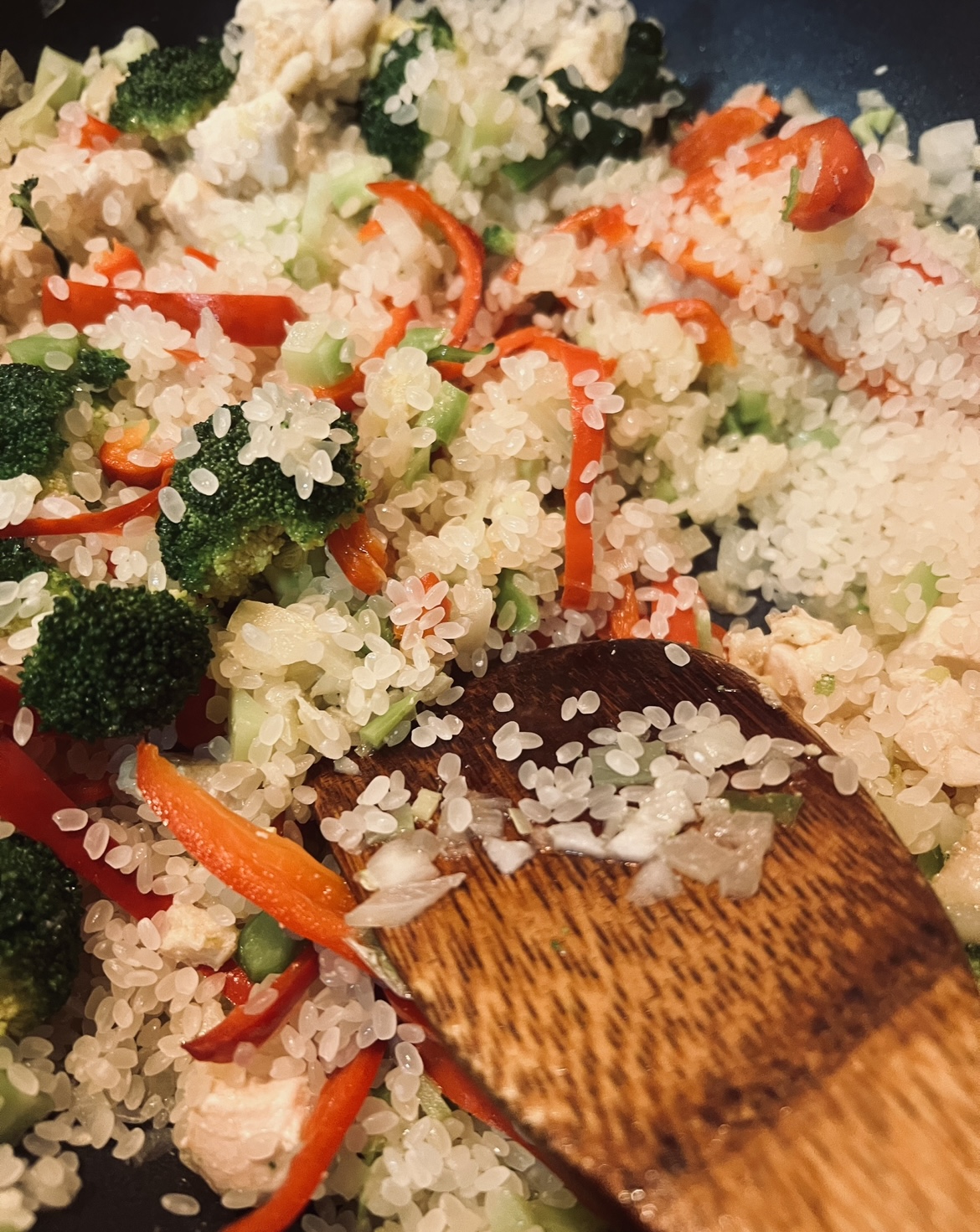 明日はお休みなので、今日はパエリアです