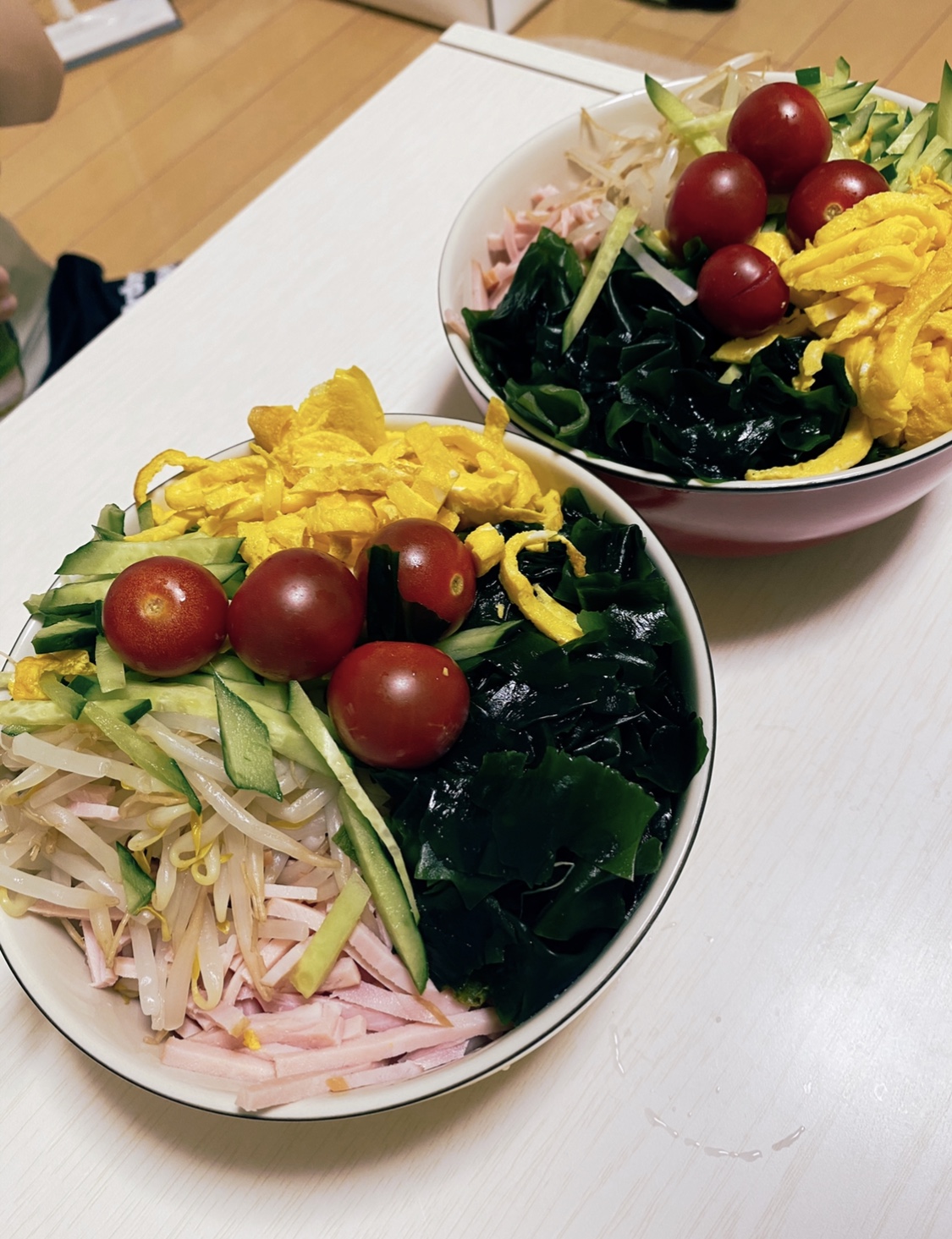 今日は一緒に冷やし中華を食べました
