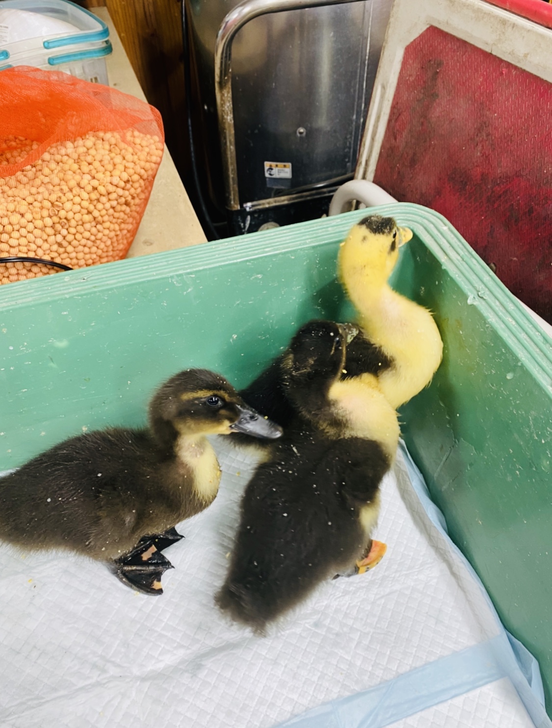 生まれたばかりのカルガモの赤ちゃんもいて、ぴーぴーと鳴いていました