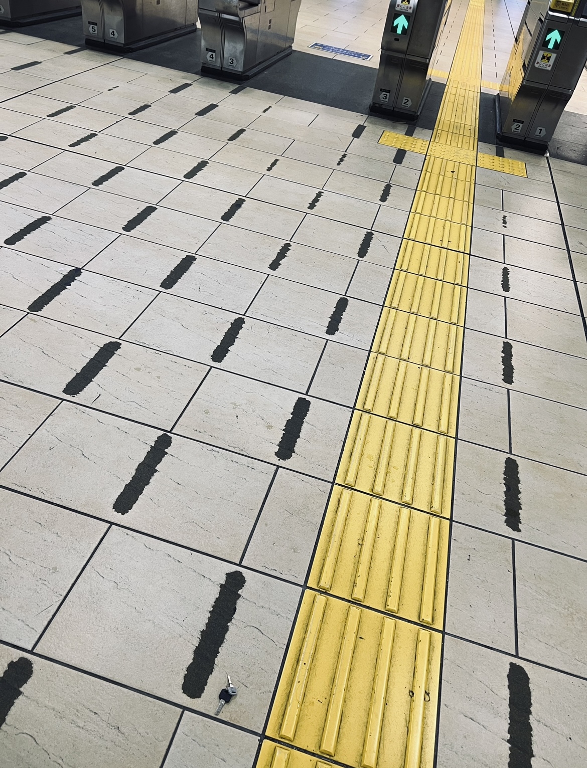 改札を出る前についたからと手に持っていた鍵をケータイを改札でタッチしたあと鞄に入れ流という動作に気を取られ、おとし、荷物を全部広げて探すと言う