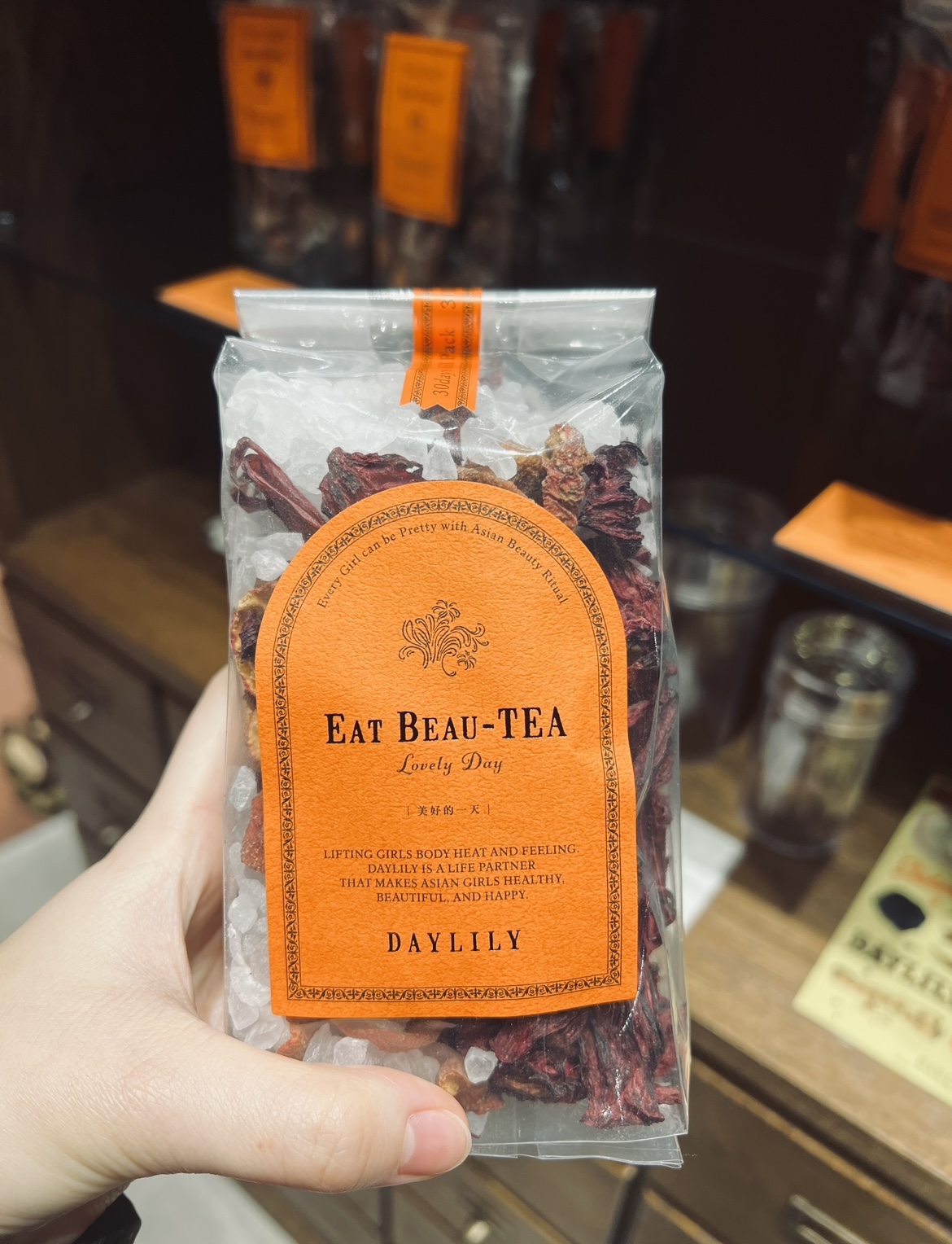 体調に合わせて補うためのスーパーフード的な役割のお茶や、お菓子が揃ってて、