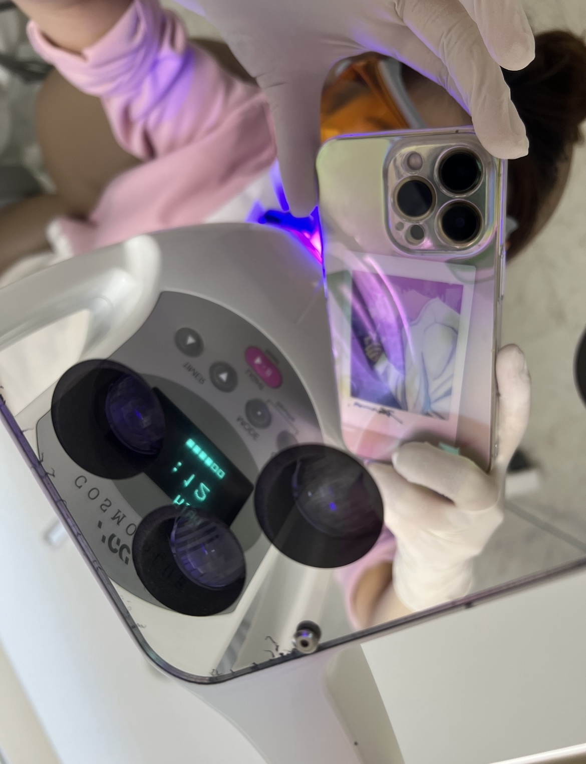 歯肉保護から初めて、ばーっと3回ほど光を当てました笑笑