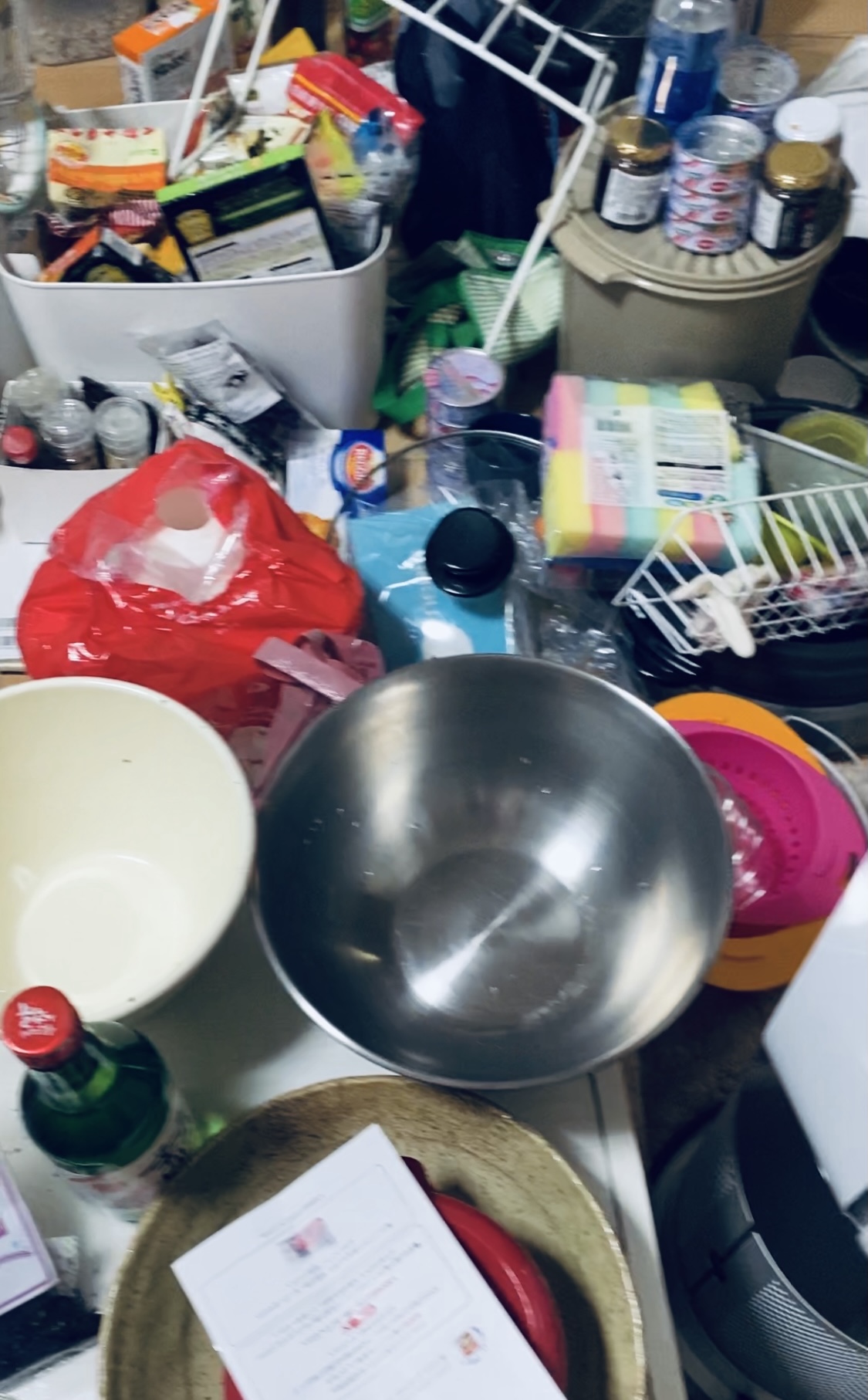 全ての調理器具を棚からだしてはじにはったマスキングテープも全て張り替えました