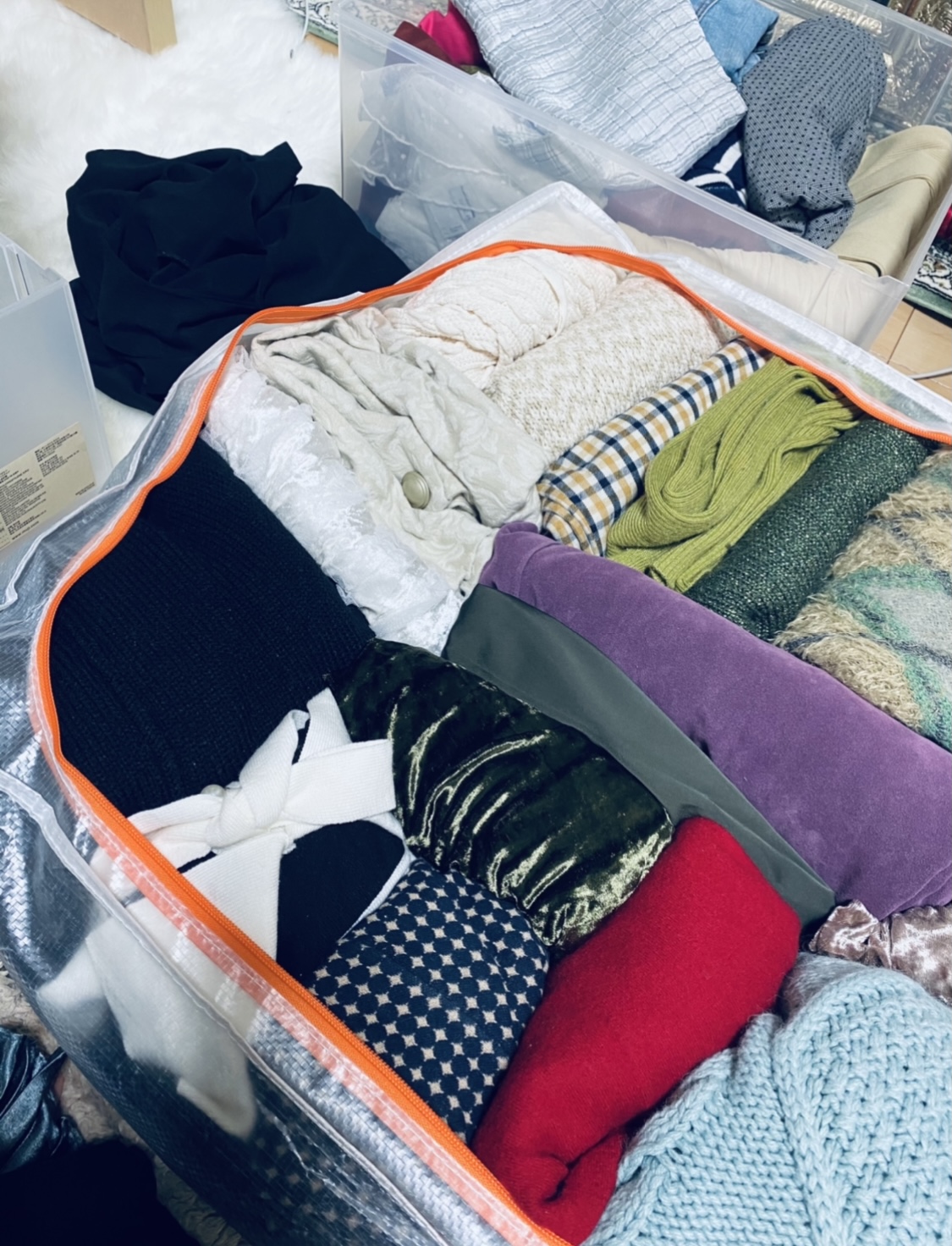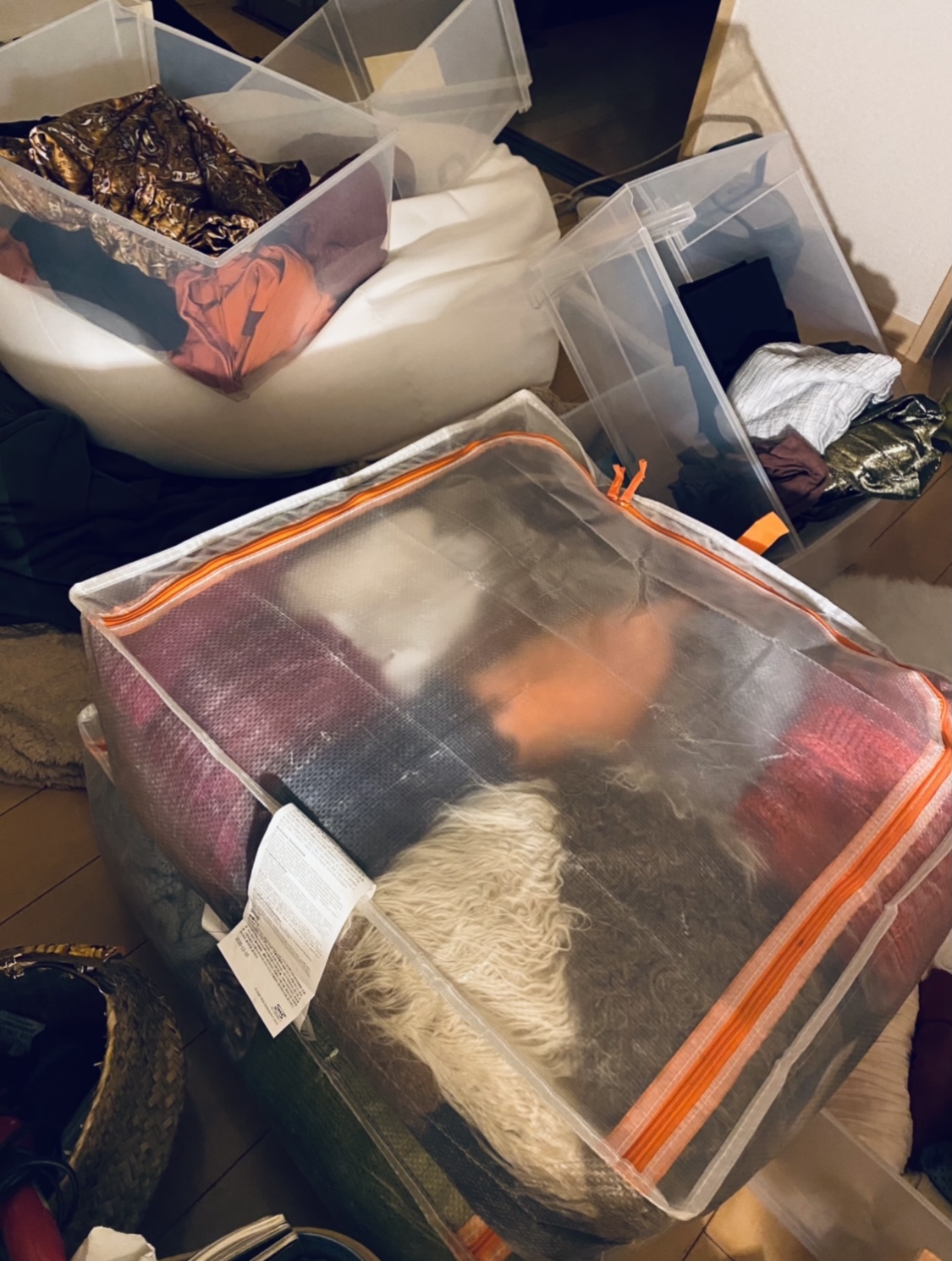 冬服はIKEAの200円くらいのおっきな収納袋にぱんぱんにつめて
