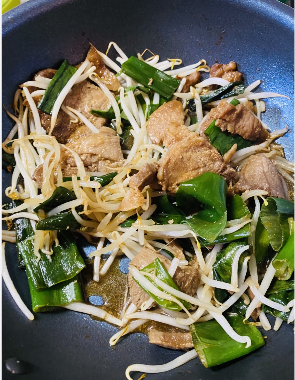 もやしとお肉とおネギで炒めものに